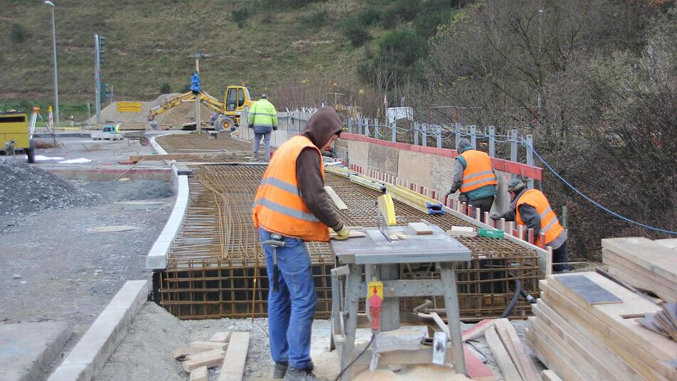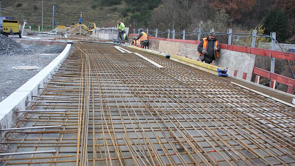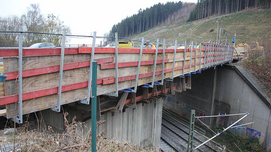 Der Aufbau der Verkehrssicherung beginnt am Montag ab 9 Uhr. Oliver Rühr bestätigte, dass die Bauarbeiten an der Bahnbrücke, bei denen man nur nach Vorgaben der Bahn in den Zugpausen tätig sein durfte, so gut wie beendet seien. Am Montag werde der Asphalt im nördlichen Bereich der Bahnbrücke abgefräst und die Brückenkappen würden betoniert. Letzteres sei der Bereich, auf dem der Geh- und Radweg angelegt und das Geländer aufgebaut werde. "Dann werden die verschiedenen Asphaltschichten eingebaut und wir hoffen, dass wir die Markierungsarbeiten noch erledigen können", sagte Oliver Rühr. Für das Markieren brauche man trockenes Wetter und es dürfe nicht zu kalt sein. "Wir hoffen, dass wir ein Wetterfenster kriegen, denn nach Regen braucht die Fahrbahn in dieser Jahreszeit lange, um abzutrocknen." Die Wetterprognosen sähen aber gut aus.