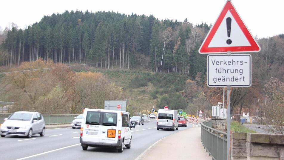 Die Verkehrsführung an der Kronacher Südbrücke wird noch einige Male geändert. Immer wieder müssen sich die Auto- und Lasterfahrer darauf einstellen, dass sie weiträumige Umleitungen fahren dürfen. Darauf wies Oliver Rühr von der Servicestelle Kronach des Staatlichen Bauamts auf Anfrage unserer Zeitung hin.