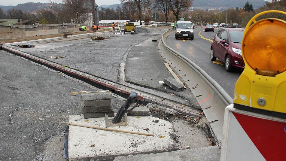 Wie geht's dann mit den Bauarbeiten am großen Kreisel Südbrücke weiter? Erst mal gar nicht, denn dann ist Winterpause. Der Vorteil: Dann hat die Bundesstraße wieder beide Fahrspuren. Die Ampeln, die im Zuge der Bahnbrückensanierung abgebaut wurden, werden dann wieder aufgestellt.