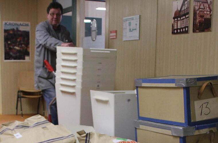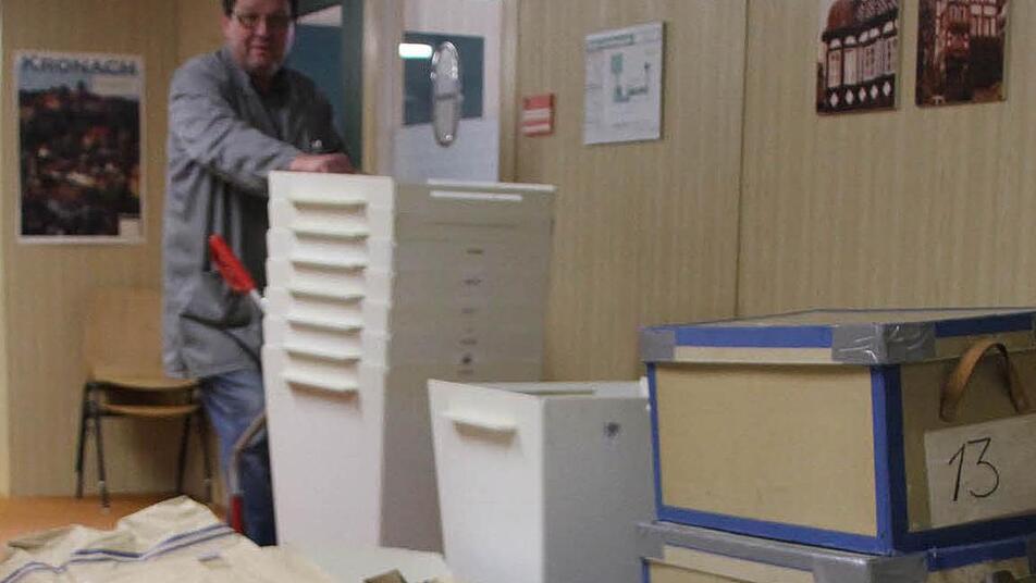 Nach der Kommunalwahl hat in den Rathäusern das Aufräumen begonnen. Die Wahlurnen und Wahlkabinen müssen bis zur Europawahl verstaut werden. Im Kronacher Rathaus hat Hausmeister Bernd Schmidt damit alle Hände voll zu tun.
