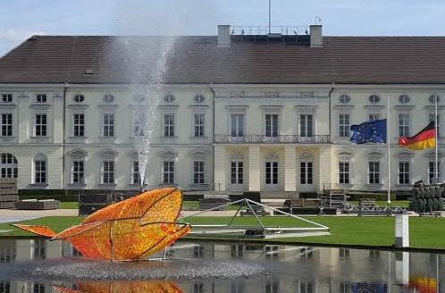 THW-Helfer aus Bamberg und Kronach haben den Wal nach Berlin transportiert und unterstützen so das Bürgerfest des Bundespräsidenten. Der gut acht Meter lange Wal des Tennenloher Künstlers Dieter Erhard besteht aus Edelstahl und Lichtsammel-Material. Er soll ein Blickfang bei den Feierlichkeiten sein.