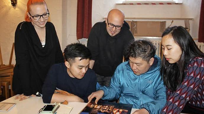 Jacqueline Stenglein und Marcel Hempfling sind zwar keine Studenten, aber die beiden haben sich eine Woche Urlaub genommen, um als "technischer Support" die jungen Künstler zu unterstützen. Es sei eine ideale Gelegenheit, Leute aus anderen Ländern kennenzulernen, meint Stenglein. "Es ist eine schöne Zeit", findet ihr Kollege, der mit seinem Engagement auch einen Beitrag für seine Stadt leisten möchte. Die Tage seien zwar anstrengend, aber es gehe auch lustig zu.