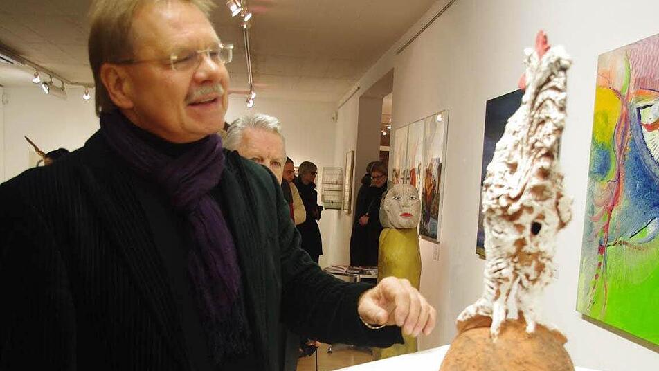 Lustige Fabelwesen wie die Kronicher Housnkuh treffen auf Sandsteinfiguren, Puppen betrachten von ihrem Fensterplatz aus farbenfrohe oder schwarz-weiße Bilder - die Hobby-Künstler des Kronacher Kunstvereins (KKV) zeigen wieder ihre Arbeiten. Vertreten ist dabei ein bunter Mix an Stilen und Techniken - von klassischer Malerei über Fotografie bis zur Skulptur in Holz, Stein und Keramik.