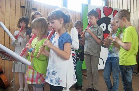 Rektorin Kerstin Zapf ging auf das Schulfest-Motto "Bilder einer Ausstellung" ein - eine Verbindung zwischen Kunst und Musik. Die Auftritt der Klassen wurden mit Flötenspiel eingeleitet. Es folgte dann ein buntes Programm über die Grundschule Teuschnitz.