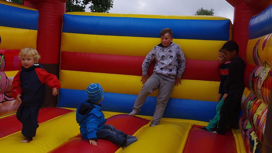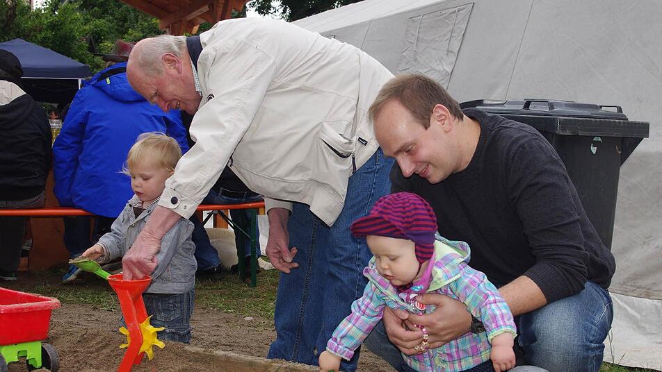 Der kleine Johann Emil spielt gerade mit seinem Opa Ludwig versunken im Sandkasten, die Brüder Paul und Martin testen die leuchtend bunte Spielkombination mit den Schaukeln, der Rutsche sowie der Hängebrücke. Florian macht "Riesensprünge" auf der Hüpfburg, und das Wippgerät scheint wie gemacht für den jüngsten Dorfnachwuchs wie beispielsweise die kleine Lilly. Dafür, dass Johann Emil, Paul, Martin, Florian und Lilly nun wieder jede Menge Spaß auf dem Spielplatz in der Ortsmitte von Lahm haben, sorgte das beispielhafte Gemeinschaftsprojekt "Lohm lang zamm - gemeinsam für unsere Kinder".