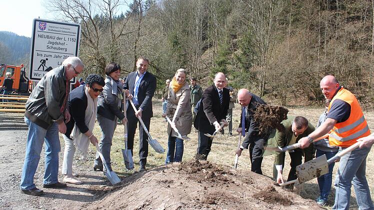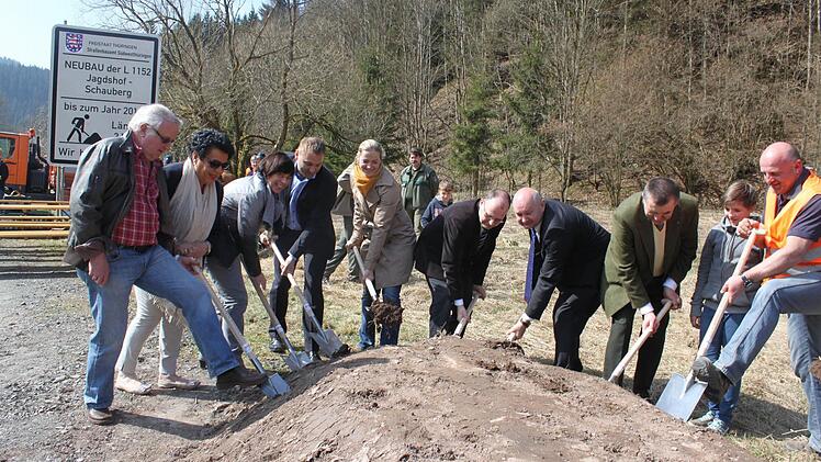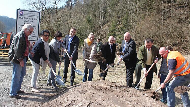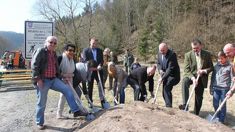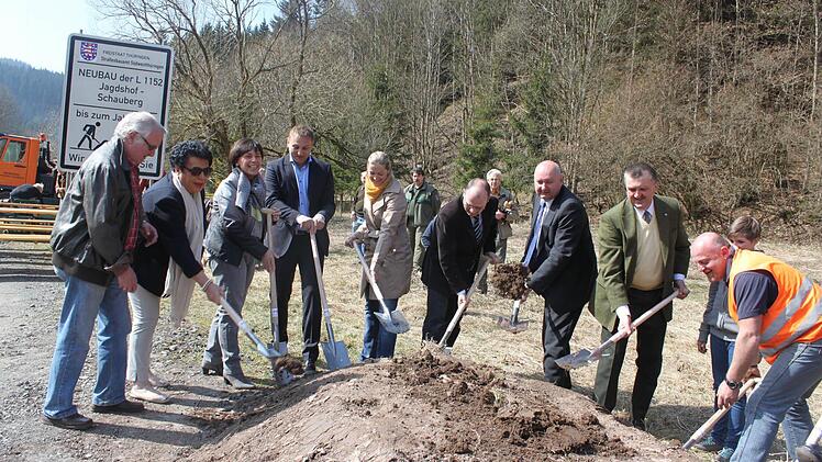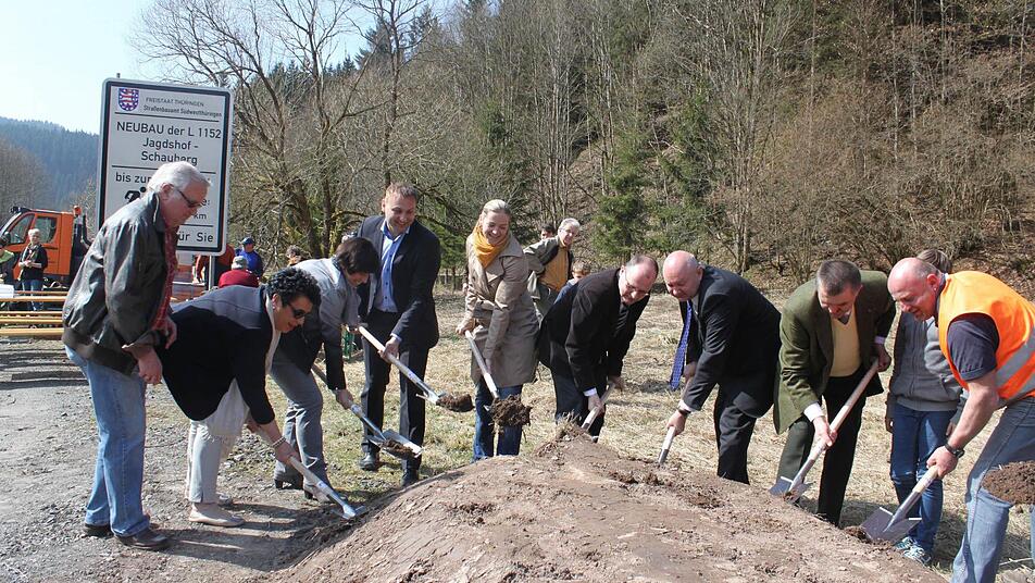 Auf diesen Moment haben viele gewartet - sowohl auf Thüringer als auch auf bayerischer Seite: Bei strahlendem Sonnenschein erfolgte am Donnerstag der Spatenstich für den Ausbau der Landesstraße 1152 Jagdshof/Schauberg.