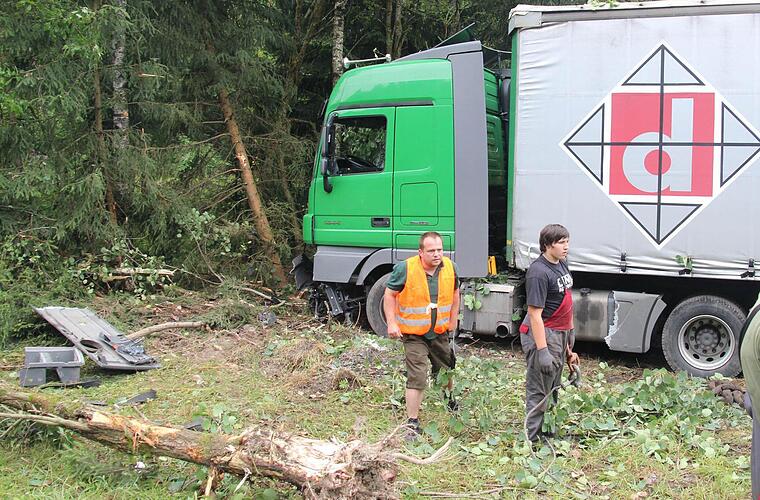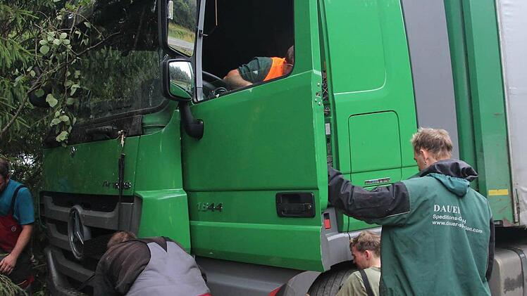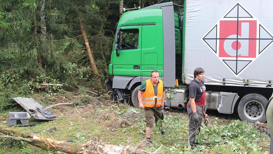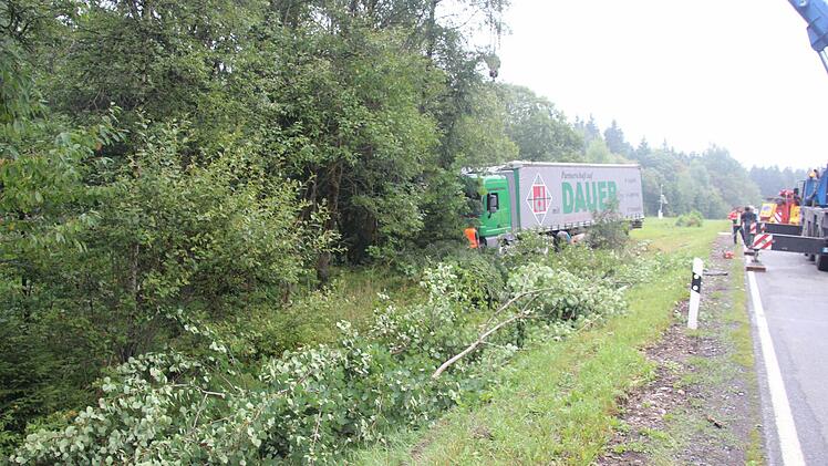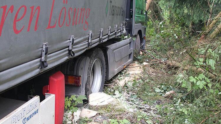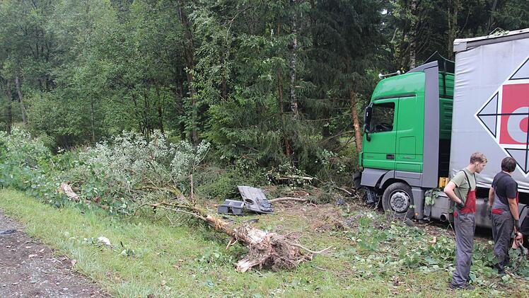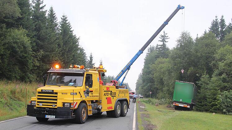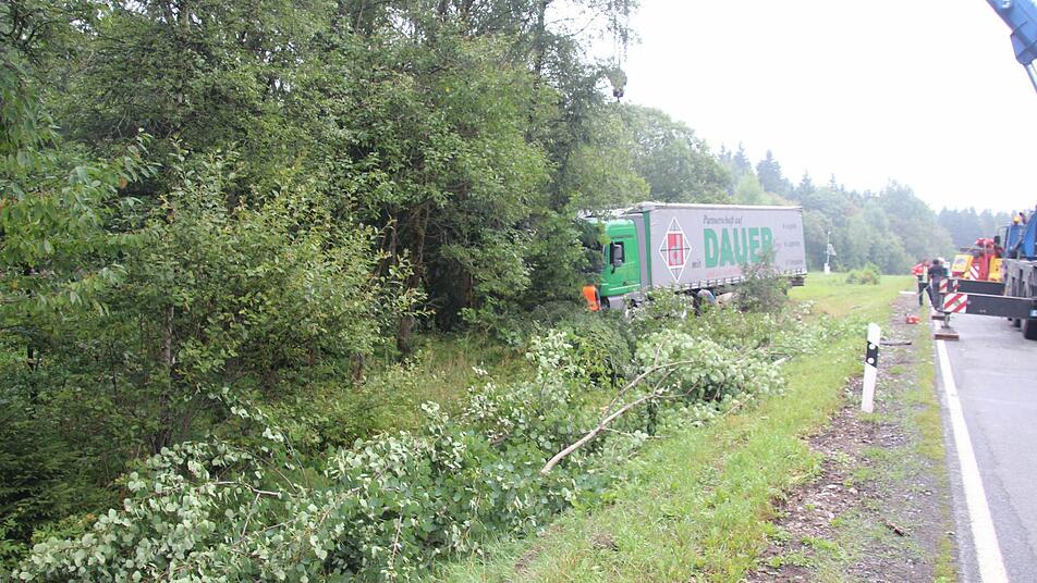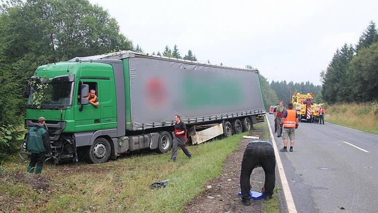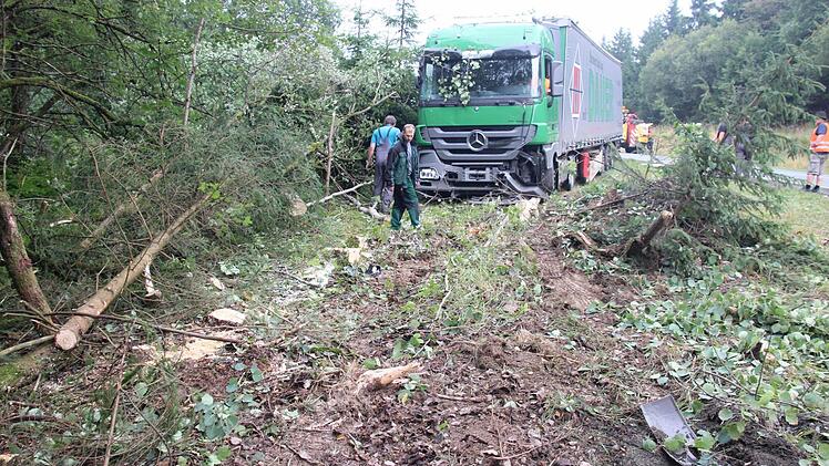 Ein Schaden von wahrscheinlich etwa 65 000 Euro entstand bei einem Unfall am Freitag gegen 15.05 Uhr am Rennsteig zwischen Steinbach am Wald und Tettau an der so genannten "Hab-Acht-Kurve". Der Lasterfahrer hatte einen Schwächeanfall erlitten.