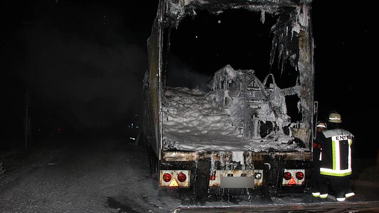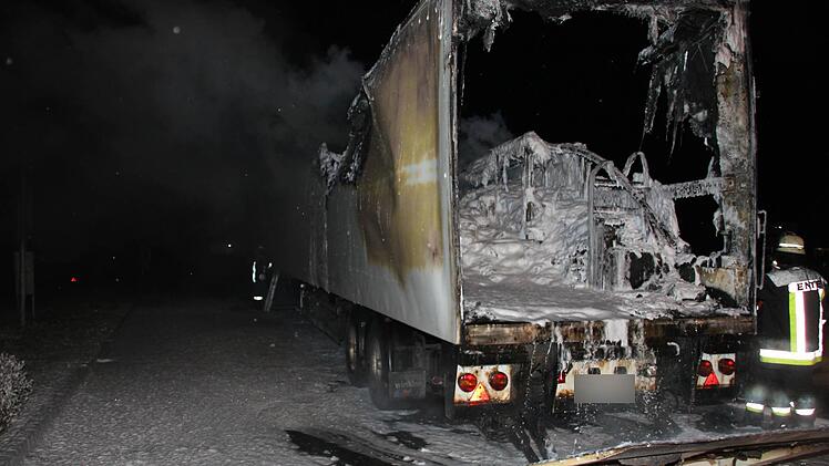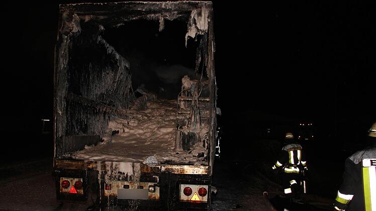 Der Auflieger eines Sattelzugs ist in der Nacht zum Mittwoch in Küps völlig ausgebrannt. Der Schaden beträgt 150.000 Euro. Der Lasterfahrer verhinderte durch seine besonnene Reaktion einen noch viel größeren Schaden.