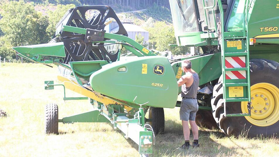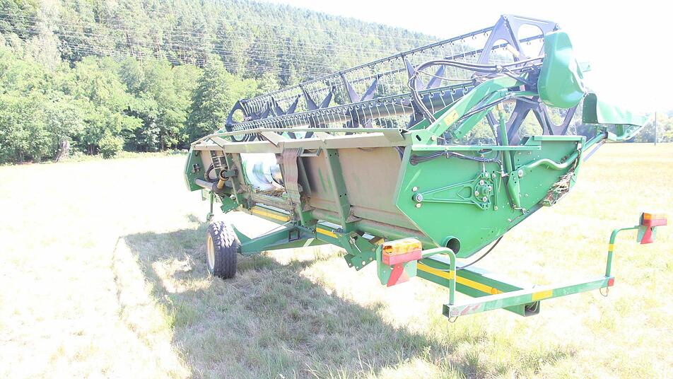 Dann geht's auf zum nächsten Feld: Mähwerk auf das Nachläufer-Fahrwerk ablassen, verriegeln, ankoppeln und der Motor heult auf, wenn Vonberg Gas gibt. Der Wildenberger macht Lohndrusch, erntet die Felder weiterer Landwirte ab. Für ihn allein würde sich die 250 000 Euro teure Maschine nicht rentieren.