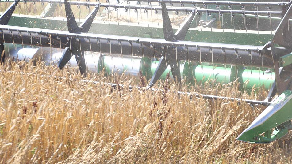 Das Mähwerk "sammelt" den Weizen ein. Foto: Friedwald Schedel