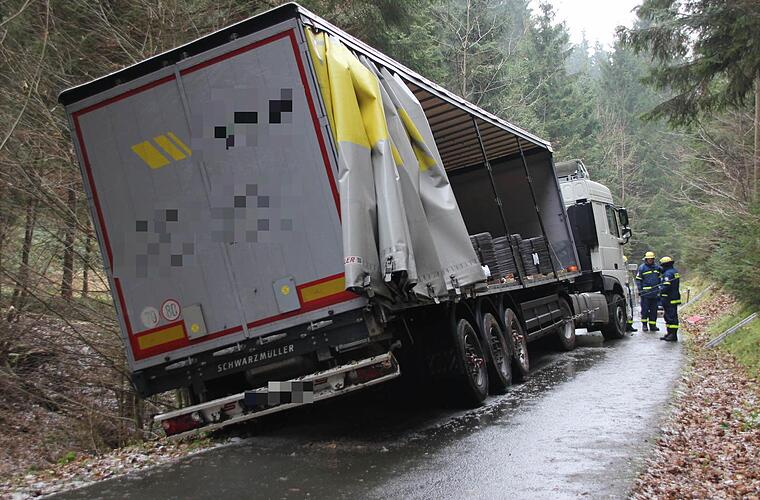 Der Fahrer des rumänischen Lkw war am Montagabend von seinem Navi in die Tiefenbachstraße gelotst worden. Doch das ist eine Sackgasse, denn die Tiefenbachstraße mündet nach zweieinhalb Kilometern in einen nur mit geländegängigen Fahrzeugen befahrbaren Waldweg.
