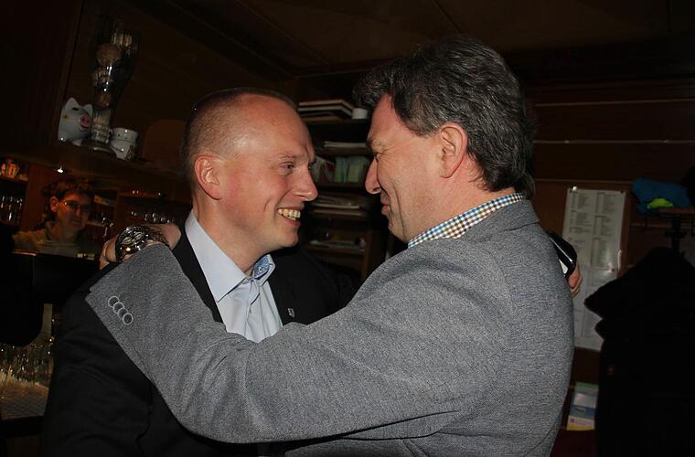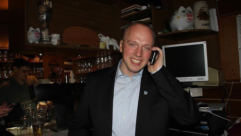 Seine Mitbewerber Peter Grüdl (SPD) und Uwe Zipfel (FW) überbrachten ihre Glückwünsche. "Die Entscheidung ist gefallen, wir werden weiterhin für unsere Bürger an einem Strang ziehen", so Peter Grüdl, der zusammen mit Ehefrau Kerstin schon nach wenigen Minuten gratulierte. Auch Grüdl, der 30,88 Prozent erreichte, räumte ein, "ein Nickerchen" gehalten zu haben. Allerdings verbrachte er den Tag in der Sauna. Das sei ideal gewesen, der Anspannung wegen, meinte er schmunzelnd.