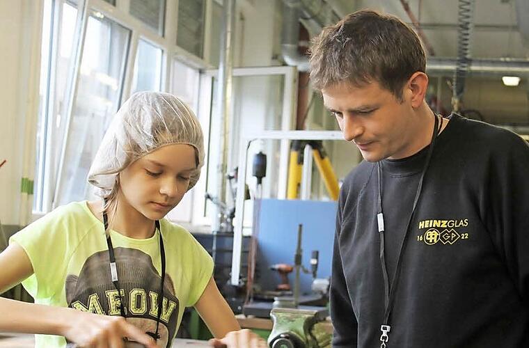 Von Anfang an dabei Viel Spaß hatten die Mädchen auch in der Glashöhle. Dort staunten sie darüber, was man alles mit Glas machen kann. Wie Fritz Hempfling, Leiter Personalentwicklung, erzählte, absolviert derzeit bei Heinz-Glas ein Mädchen eine Ausbildung zur Werkzeugmechanikerin.