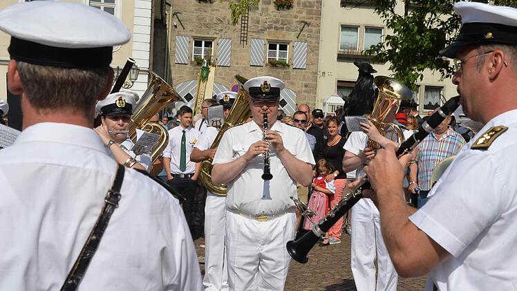 "Das macht total Spaß! Die Leute sind super nett hier. Wir werden unglaublich freundlich aufgenommen", spricht Peter Urban in Superlativen. Er muss es wissen, denn er ist ein "alter Hase", schon seit 1989 beim Marine-Musikkorps und seit 1995 bei dessen Gastspielen in Kronach dabei. "Am Anfang waren wir alle zwei Jahre beim Freischießen, einmal sogar zwei Jahre hintereinander. Jetzt spielen wir im Abstand von drei Jahren - abwechselnd mit den anderen Militärmusik-Korps."