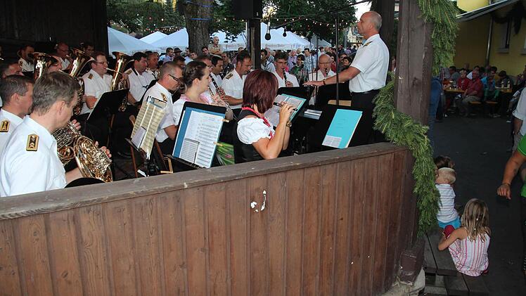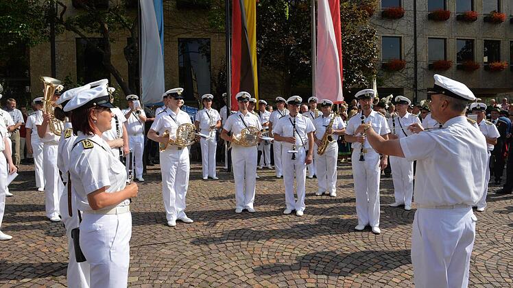 Den Mitgliedern seines Musikkorps gefällt es in Kronach. Das merkt man. Die drei Damen der Formation tauschten übrigens beim Konzert im Pavillon ihre schmucke Marine-Ausgehuniform gegen fesche und selbst gekaufte Dirndl. Eine Augenweide - und eine Hommage an die Kronacher, die vermehrt in Tracht zum Freischießen kommen.