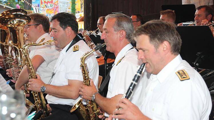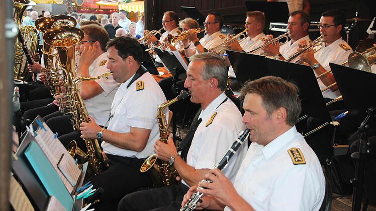 Das Marine-Musikkorps Ostsee Kiel ist seit 1995 beim Kronacher Freischießen zu Gast. Von Anfang an dabei ist Saxofonist Peter Urban. Er und seine Kollegen freuen sich auf die Auftritte im Pavillon auf der Hofwiese. Die drei Musikerinnen tragen Dirndl.