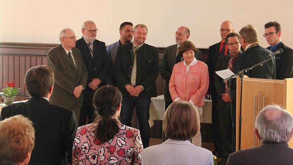 Neun Stadträte wurden verabschiedet: Michael Hennings (1 Jahr im Gremium), Thilo Moosmann (2), Daniela Fischer-Petersohn, Hardy Hanuschke, Johannes Hausmann (je 6), Edith Marr (15), Joachim Doppel (18), Edgar Dunst und Mathilde Hutzl (je 24). Außerdem verabschiedete Beiergrößlein den Gundelsdorfer Ortssprecher Werner Reinhardt (circa 20 Jahre auf vier Etappen verteilt).