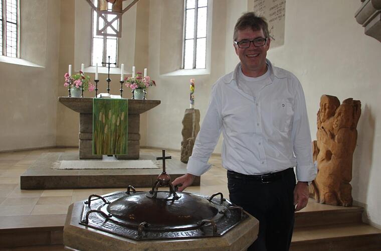"Hier im Gemeindehaus wurden angenehme Arbeitsbedingungen geschaffen", sagt er. Für ihn hat dieses Gebäude eine besondere Bedeutung. Denn der 54-Jährige war von Anfang an bei den Planungen und bei der Realisierung des Neubauprojekts mit einbezogen. Er spricht nicht zuletzt wegen der Nähe zu seiner Kirche von Synergieeffekten, die mit dem neuen Gemeindehaus geschaffen wurden.