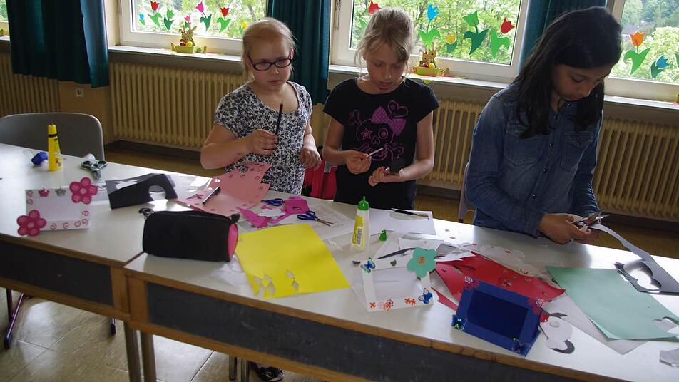 Laura ist an diesem Mittwochnachmittag mächtig beschäftigt. Nachdem sie bereits einen Fotorahmen gebastelt und mit bunten Schmetterlingen und Blumen verziert hatte, schneidet sie nun die Umrisse eines Pinguins aus. "Den Pinguin will ich in meinem Kinderzimmer aufhängen", verrät die Zehnjährige im Handarbeitsraum der Tettauer Schule.