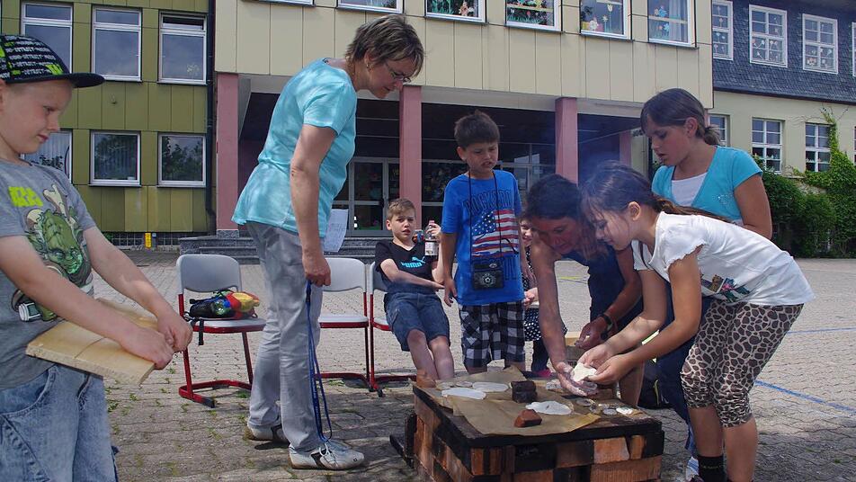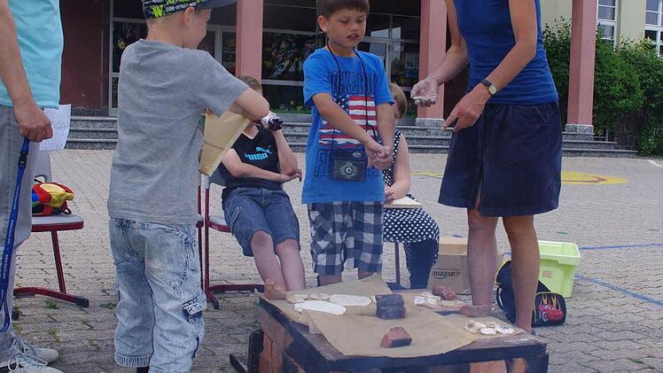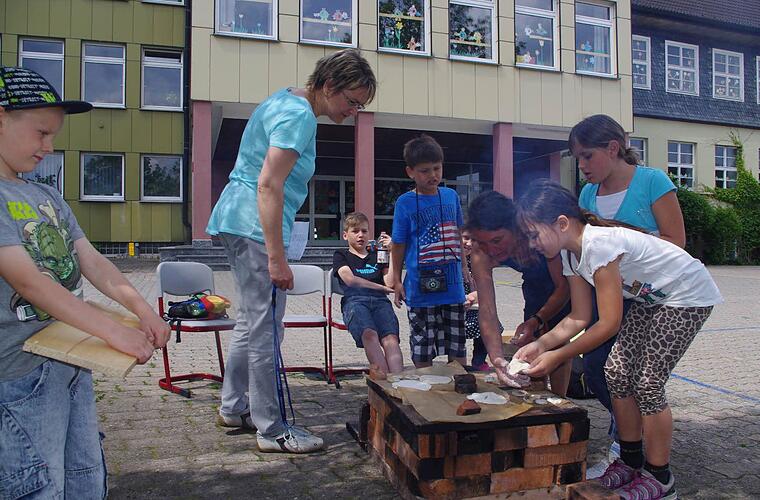 Ein Höhepunkt der medienfreien Tage war erneut der Besuch der Stadtoase, die mit ihrer Projektleiterin Susanne Meier schon Dauergast an der Schule ist. Heuer wurde auf dem Pausenhof eine "Küche Open Air" mit dem zerlegbaren, schnell konstruierbaren und stets veränderbaren mobilen Backofen aus Brettern und Steinen aufgebaut.