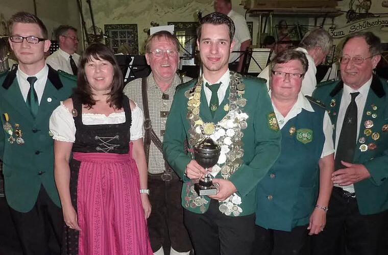 Als neuen Regenten präsentierte Schützenmeister Michael Morand dem Publikum Michel Dückerhoff, der mit einem 37,0-Teiler bei 30 Konkurrenten die begehrte Königswürde errang. "Dies war seit 40 Jahren der beste Königsschuss", so Armin Schülner anerkennend. Dückerhoff stehen als Erster Ritter Heinrich Förster (180,7) und als Zweite Ritterin Sabine Wachter (388,6) zur Seite.