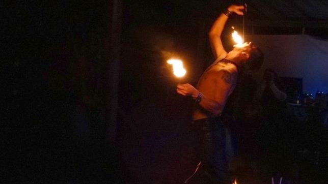 Zu späterer Stunde begeisterte er die Gäste mit seiner wilden Feuershow, zu der er diesmal auch eine Partnerin mitgebracht hatte. Beide spuckten und schluckten Flammen, drehten sich mit glühenden Kugeln und zogen sich brennende Stäbe über die nackten Arme. Trotz der kühlen Nacht ließen es sich die Gäste bei frischem Schmäuß, gesüßtem Wein und allerlei Kurzweil noch lange gutgehen und feierten in das keltische Neujahr hinein.