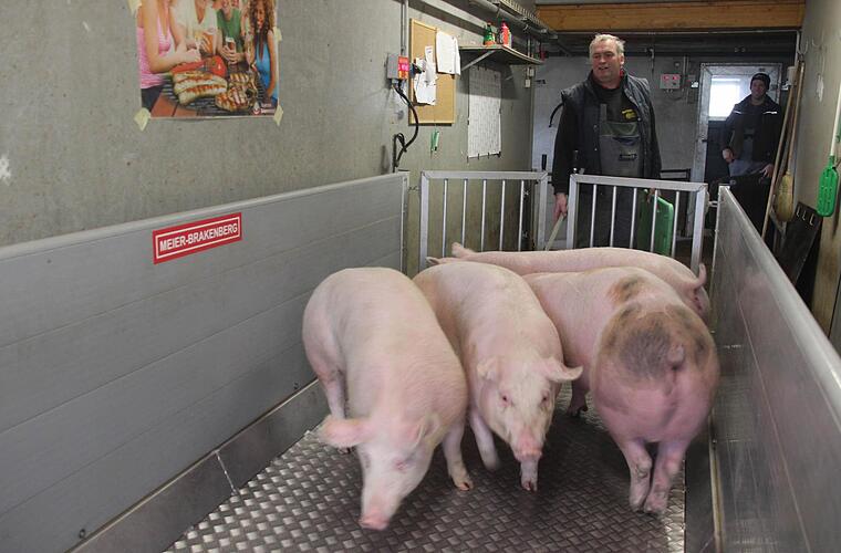 Kein Stress für die Tiere Doch irgendwann einmal ist das Schlachtgewicht erreicht. Hubert Diller bringt die Schweine, die am Montag geschlachtet werden, bereits am Samstag zum Schlachthof in Kronach, damit sie sich beruhigen und den Transportstress abbauen können. Direkt nach dem Transport schlachten, das kommt für ihn nicht infrage, denn darunter litte die Fleischqualität. "Da würden die Schnitzel total hart", weiß Diller. Und er will ja nur beste Qualität liefern.