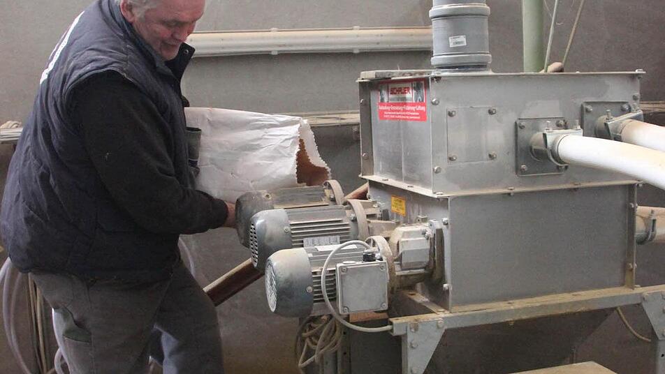 Das Getreide wird geschrotet, gemischt und Wasser zugesetzt, so dass die Schweine per Leitung einen Brei in den Trog bekommen, der gar nicht so schlecht riecht. "Fast wie Müsli", schwärmt Hubert Diller. Wasser wird deshalb mit dem Schrot gemischt, weil es sonst im Stall stauben würde. Außerdem haben es die Schweine lieber, wenn sie einen Brei vorgesetzt bekommen.