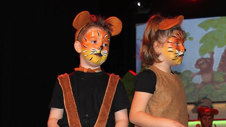 Affen (Elferrat), die außer Rand und Band waren, ein gähnender Balu (Leonie Schneider) und ein aufgeregter Mogli (Tim Fehn) bildeten den Anfang. Danach hatten die Kleinsten ihren löwenstarken Auftritt, bevor die Piraten auf der Bühne tanzten.