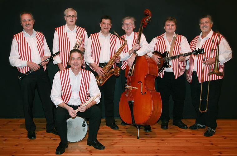 Bei schönem Wetter findet das Konzert im Schlosshof statt, bei schlechtem Wetter im Kutschenhaus (dann ist das Kartenkontingent begrenzt). Geboten wird Jazz, Dixieland und Swing - eben Musik, die Spaß macht.