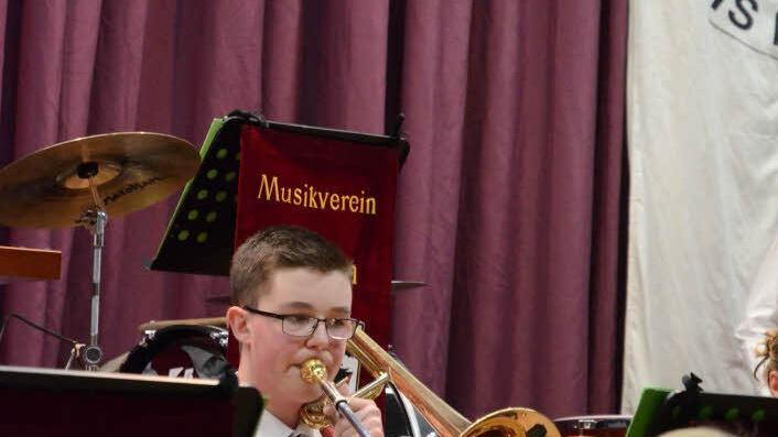 Durch das Programm führte erstmals der 16-jährige David Schnappauf als Moderator. Er spielte aber auch als Posaunist im im Orchester mit.