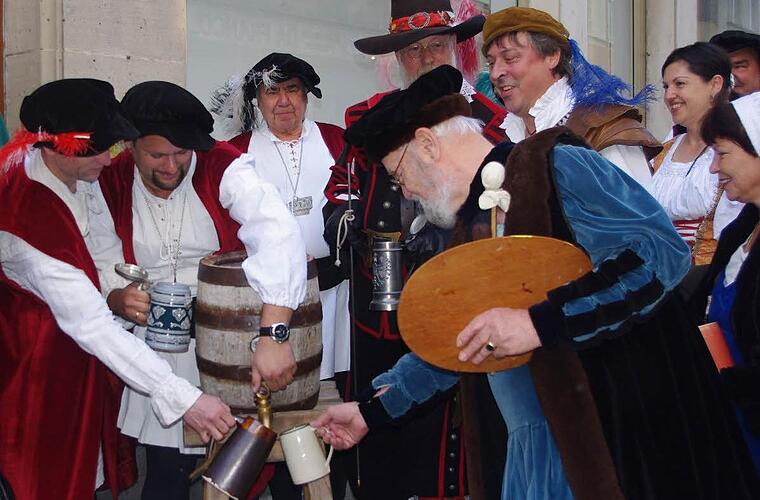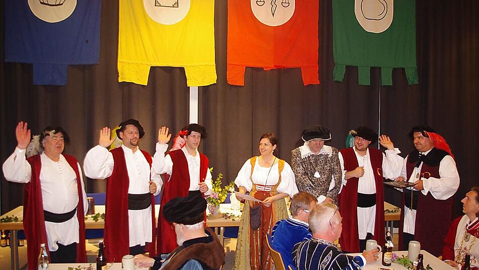 Jens Schick berichtete von einem herausragenden Historischen Stadtspektakel mit vielen Gästen und viel Spaß. Erfreulicherweise habe man den Oberbürgermeister behalten dürfen, der sich gerade auf einer "Sanatoriumsinsel" von den Wahlstrapazen erhole. Er mahnte an, beim nächsten Melchior-Otto-Tag für ausreichendes Bier der Edelleute zu sorgen. Laut Markus Steller werde sein Viertel durch ein "Weib" bereichert. Die Restauratorin schaffe es, alles in ihren Händen zu Gold zu machen.