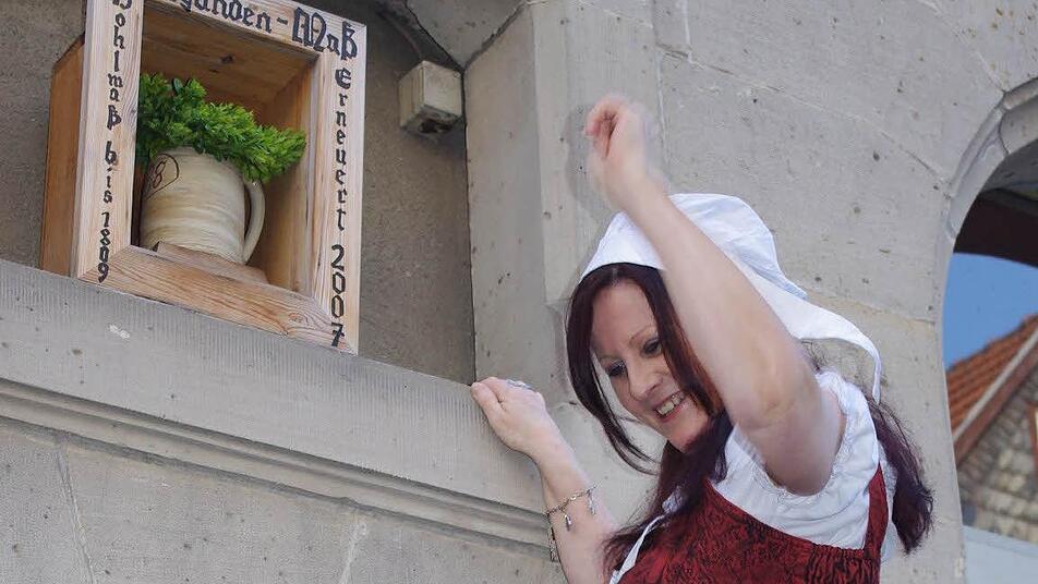 Damit war sogleich der ausgebrochene Streit, ob ihr der Titel Unter- oder Oberbürgermeisterin zustehe, beigelegt. "Bei so viel Schönheit geziert sich der Titel Oberbürgermeisterin", stellte der Stadtvogt klar.