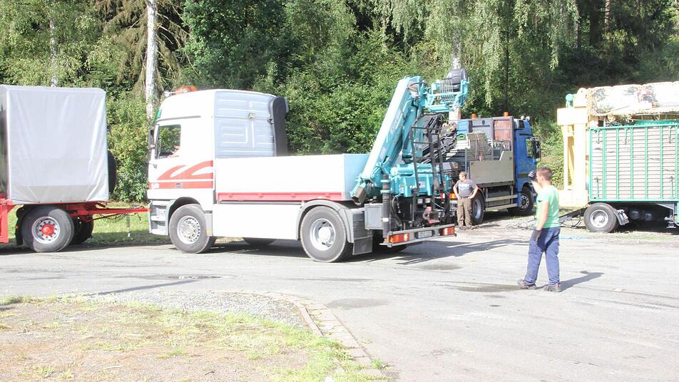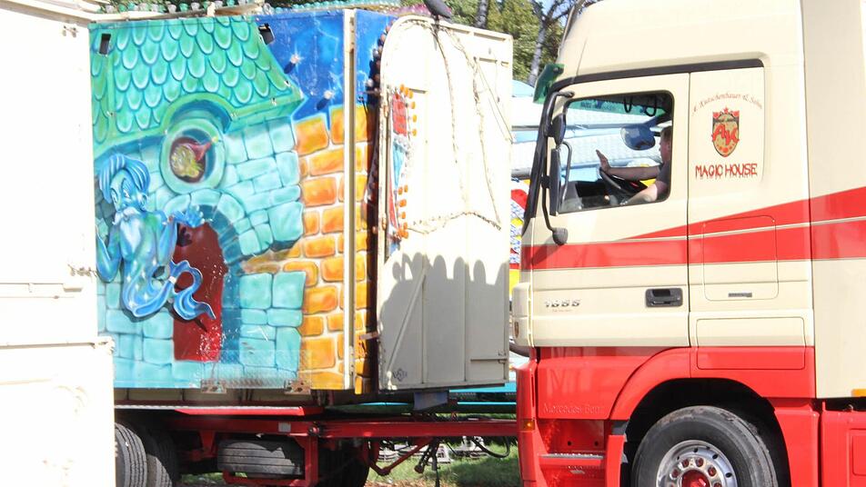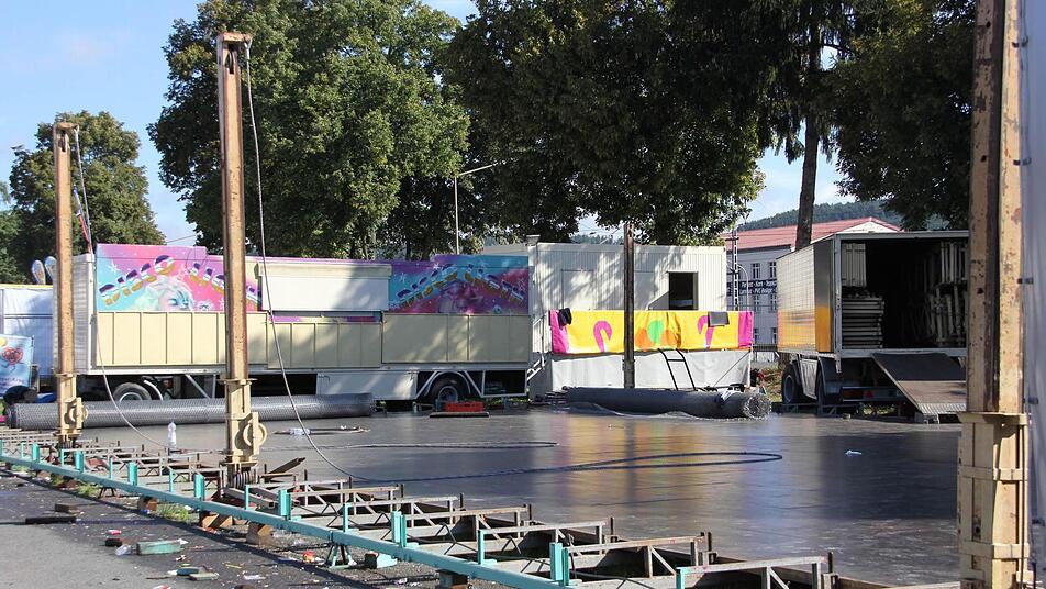 Die Schausteller machten sich nach dem Kronacher Freischießen bereits am Montag auf den Weg zu ihren nächsten Zielen. Doch vorher war Schwerarbeit angesagt, ehe die Buden und Fahrgeschäfte verladen waren.