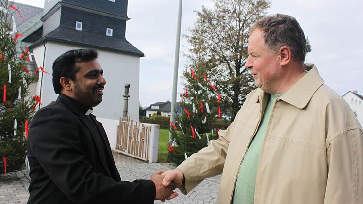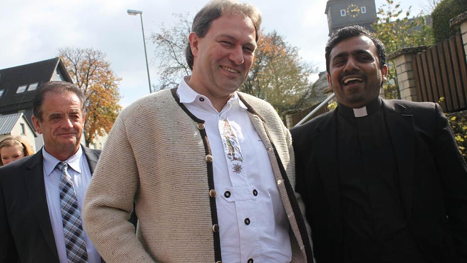 Obwohl Cyriac Chittukalam bereits seit vier Jahren in Deutschland weilt, ist ihm bewusst - im Frankenwald wird einiges Neues auf ihn zukommen. "Man sagte mir, die Frankenwäldler sind zurückhaltend." Er spricht von Traditionen, die er kennenlernen wird. Interessiert hört er dem Pastoralreferenten zu, als dieser ihm den Kirchweihablauf, mit Trachtenumzug, Plantanz oder Bier aus der Gießkanne trinken erklärt.