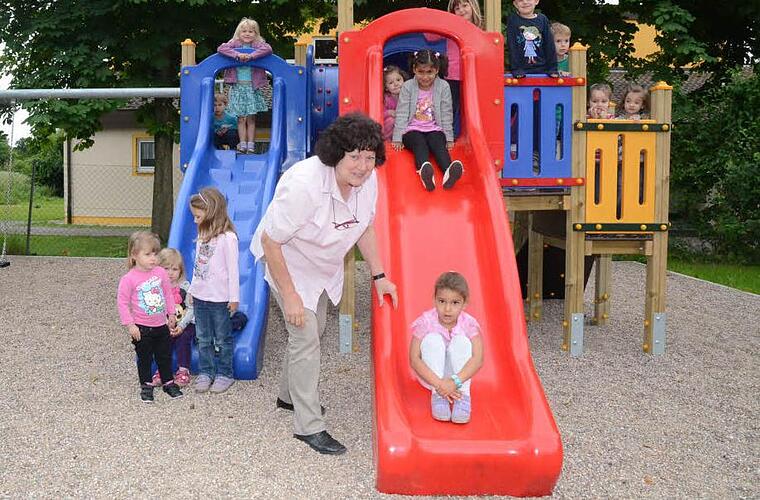 Froh über neue Anlagen Kindergartenleiterin Margaretha Gwosdek ist zusammen mit dem Personal und den Kindern überglücklich über die schönen neuen Anlagen und Spielgeräte.