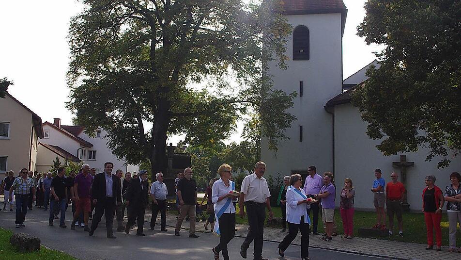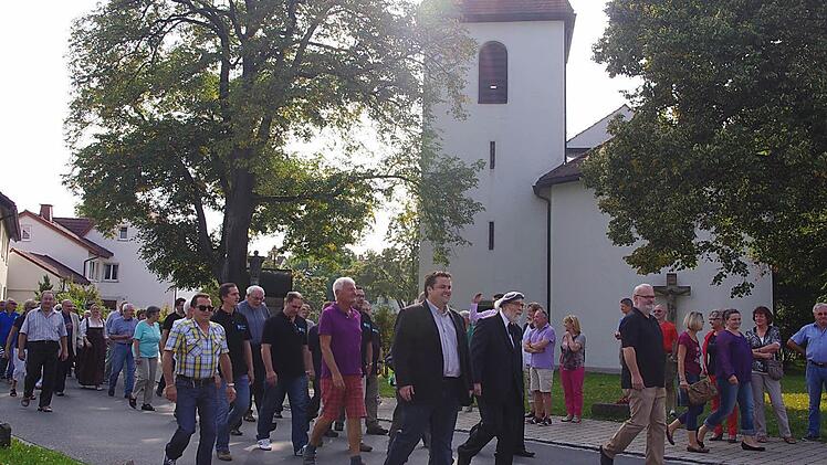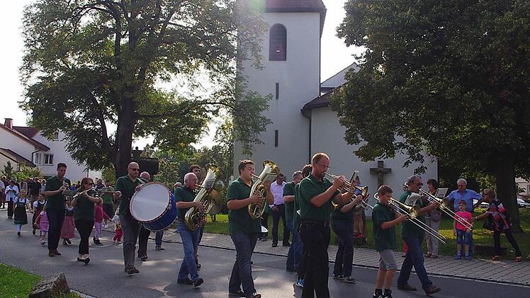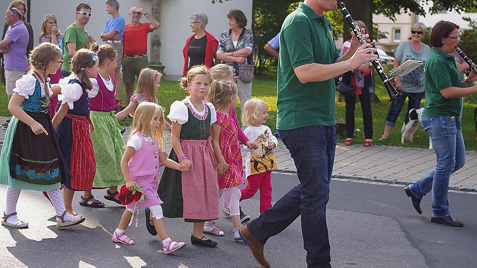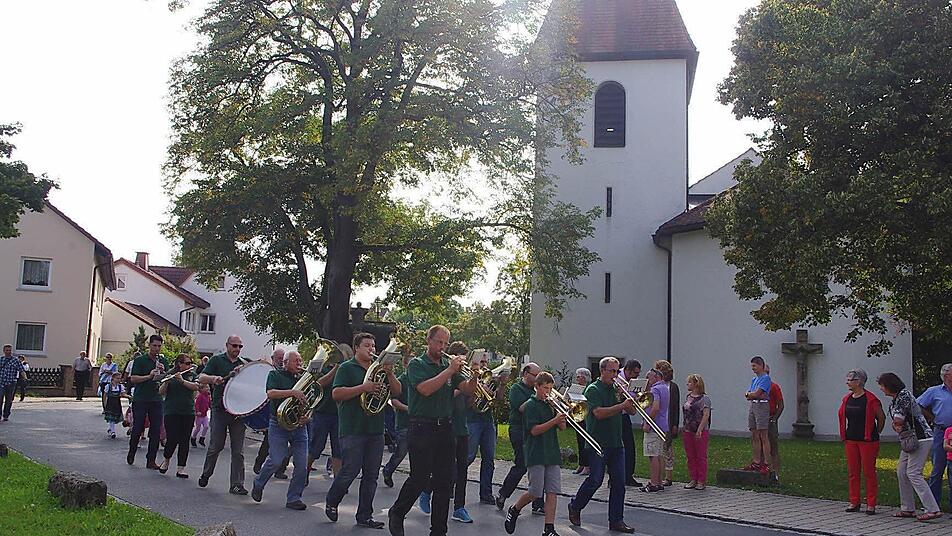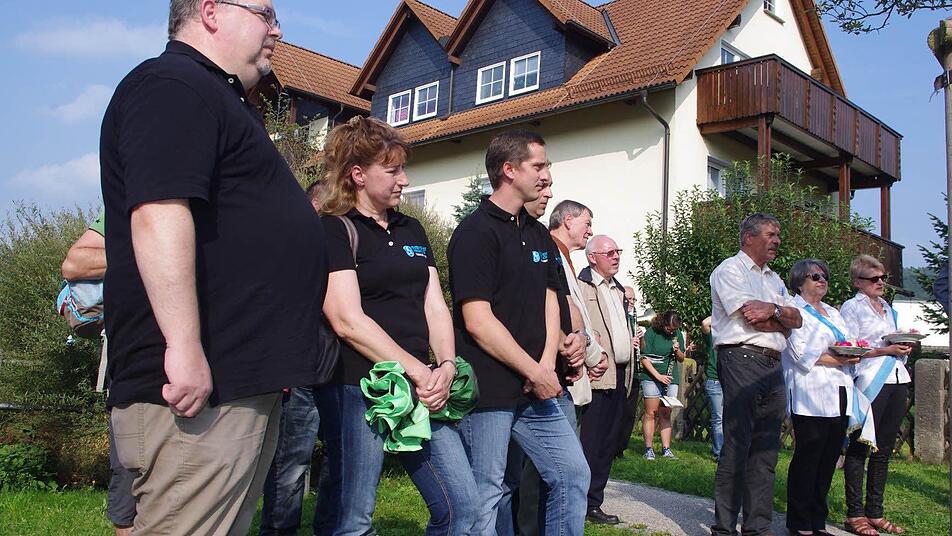 Die Flößerkapelle Neuses sorgte mit eindrucksvollen Chorälen für die stimmige Umrahmung der Einweihung. Die Musiker hatten auch die Parade angeführt, in der die Verantwortlichen vom Feuerwehrhaus zur "Klüeßfraa" gezogen waren.