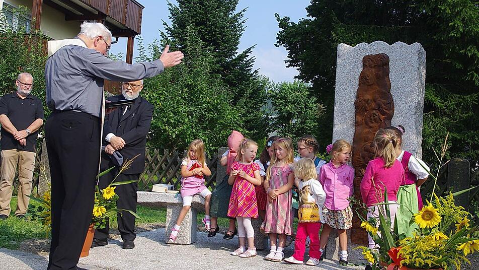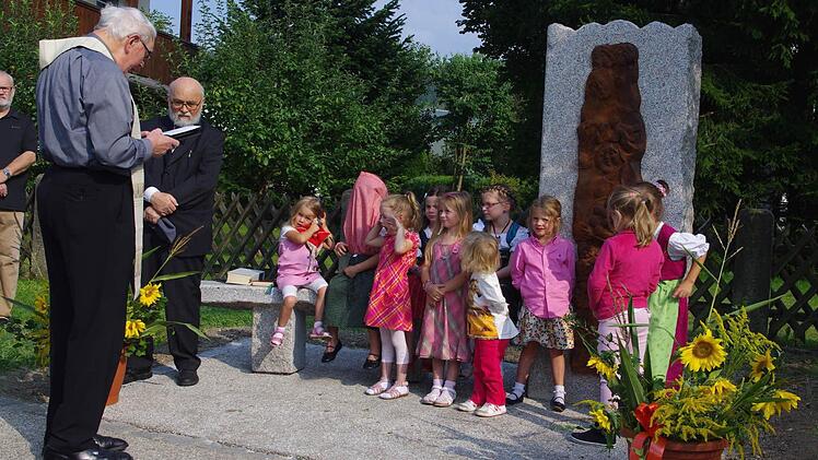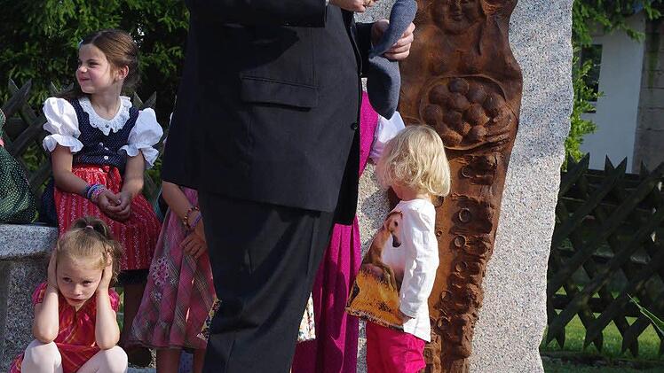 Noch nie untergekommen Feierlich eingeweiht wurde die Statue von Pfarrer Baptist Schaffer. Er sei zunächst etwas ratlos gewesen, welche Worte zu der Segnung einer "Klüeßfraa" passten. In seinen 45 Jahren Priesterdienst sei ihm das nie untergekommen, auch Vorlagen gebe es dafür keine. "Gemeinsam beten und glauben" - das Motto der Neuseser Kirchweih passe aber sehr gut zu der Skulptur. Im Kreise der Familie zu essen, sei die Urform der menschlichen Gemeinschaft. "Beim gemeinsamen Essen geht es nicht nur darum, Nahrung aufzunehmen, sondern es stellt auch einen wesentlichen Teil des menschlichen Daseins dar", zeigte er sich sicher.