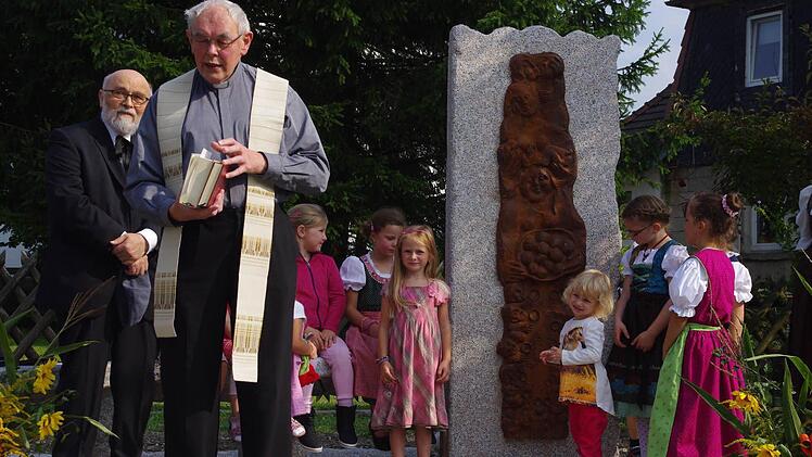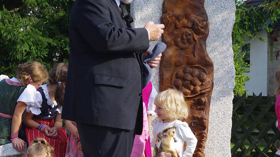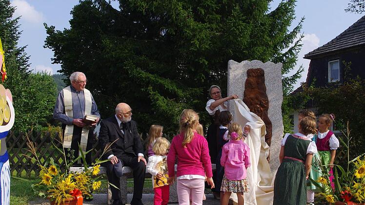 In jedem seiner Werke erzähle Schreiber eine Geschichte, wobei er dennoch dem Betrachter selbst Platz für eigene Interpretationen lasse. Herzlich bedankte sich Grune auch bei den anwesenden Mitarbeitern der Eisengießerei Neuses, die das Kunstwerk in Eisen gegossen hatte, sowie bei vielen anderen Helfern und Unterstützern. Möglich gemacht wurde das Werk weiter durch die Unterstützung der Stadt Kronach sowie der Baufirma Harthan, die die Fundamente und den Transport übernahm. Sein Dank galt weiter Winfried Lebok, der das Umfeld geplant habe, und nicht zuletzt der Freiwilligen Feuerwehr Neuses. Diese schaffe mit der Austragung der Kirchweih das entsprechende Ambiente.