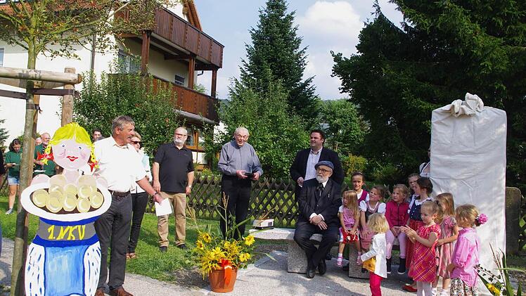 Größte Anerkennung zollte er dem aktiven Klüeßverein-Mitglied Heinrich Schreiber, der Neuses schon mit mehreren Kunstwerken - so beispielsweise auch der "Wörschtfresser-Marter" - bedacht habe.
