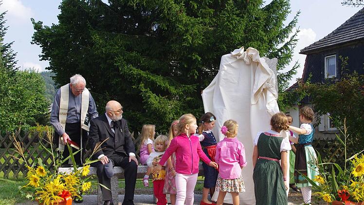 Enthüllt wurde die Statue von den "Gat'n Ratt'n", Jugendgruppe des Gartenbauvereins Neuses.