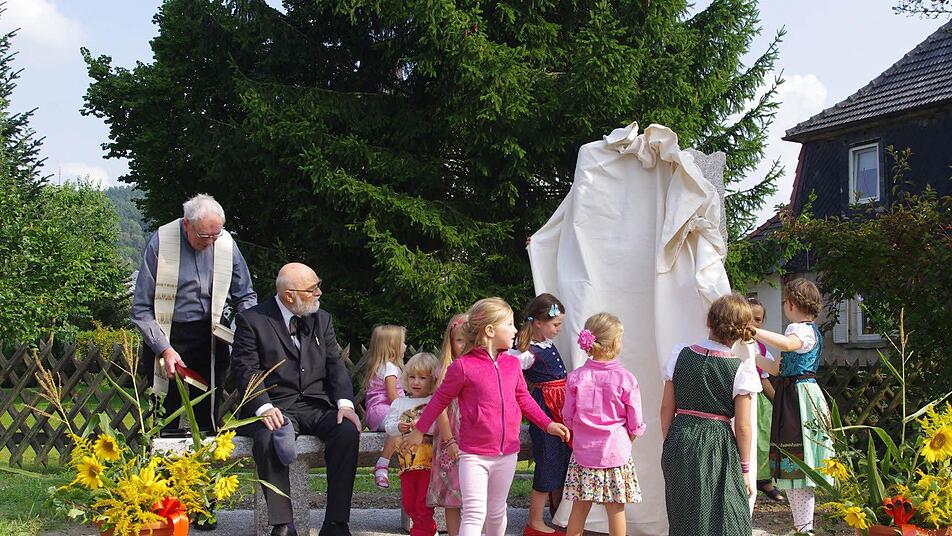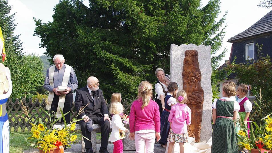 Mit der "Lustbarkeit des Kloßes" - so der bedeutungsvolle Titel des Kunstwerkes - wurde Neuses um einen weiteren Anziehungspunkt im Bereich der abgeschlossenen Ortserneuerung reicher. Ermöglicht hat dies der 1. Neusiche Klüeßverein, zeitlich einhergehend mit seinem 20-jährigen Jubiläum heuer.