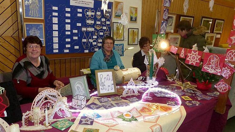 Auch in Nordhalben gibt es geschickte Hände, die beim Markt ihre hübschen Sachen anbieten. So fertigte unter anderem Dieter Knauer detailgetreues Holzspielzeug, kunstvolle Häkel- und Strickarbeiten fanden sich am Stand von Hedwig Demantke, Ilse Köster oder Heini Gremer, Edgar Wunder bastelte rustikale Krippen und den Kalender mit alten Fotos legten Rudolf Ruf und Thomas Daum auf. Für die musikalische Umrahmung sorgten die Musikkapelle Nordhalben und der Posaunenchor Heinersberg. Die jüngsten Besucher waren in der Ecke des Kindergartens gut aufgehoben und wurden vom Nikolaus beschenkt. "Die Resonanz ist bei allen unseren Anbietern gut, es ist was gegangen" freute sich Martina Simon von der Klöppelschule.