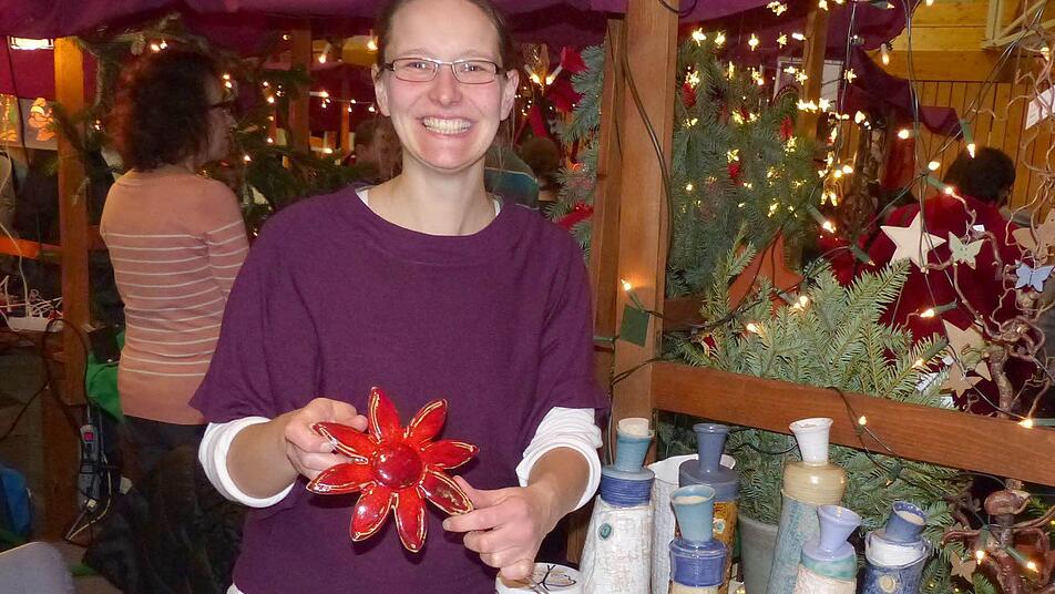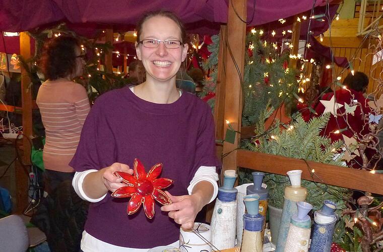 "Trotz der vielen Leute geht es ruhig und gemütlich zu, die Besucher sind interessiert an unseren Sachen, nehmen sich Zeit und kaufen auch." Judith Schuberth, Keramikermeisterin aus Tschirn, lobt die gute Stimmung in der warmen Halle. Sie, die bisher den Nikolausmarkt nur als Gast kannte, war zum ersten Mal als Fierantin mit ihren Töpferwaren dabei.