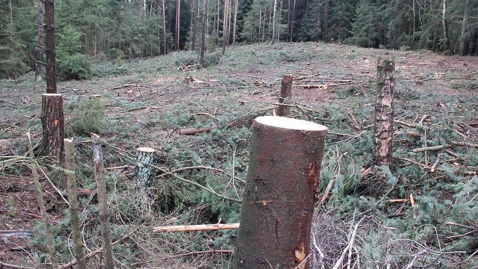 Mehrere große Bäume blieben stehen, damit durch Aussamen die Naturverjüngung ihren Lauf nehmen kann. Auch Büsche blieben stehen und auch eine Reihe von brusthohen Baumstümpfen, die als Landeplatz und Ausguck für Raubvögel dienen und als Totholz vielen Lebewesen, vor allem Höhlenbrütern Lebensraum bieten. Wer solche Baumstümpfe stehen lässt, erhält Zuschüsse. Welcher Waldbesitzer würde absichtlich die dicksten Teile der Bäume stehen lassen, die dann von Planierraupen beseitigt würden?