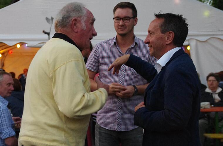 Mit einer Rose und einem Schluck Radler wurde er von seinen Parteigenossen im Rathaus abgeholt. Deren Gesichtern war die Anerkennung abzulesen. Ebenso wie wenig später vor dem Festzelt des TV
