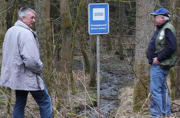Dieter Radlo und Reinhard Wolf fahren die verschiedenen Stellen ab, an denen die Zuläufe zur Talsperre Mauthaus beginnen oder wo sie in den Trinkwasserspeicher münden. Überall stoßen sie auf blaue Schilder mit drei Wellen darauf: "Fassungsbereich! Betreten verboten!" Würden sie noch einen Schritt weitergehen, würden sie eine Ordnungswidrigkeit begehen. Fassungslos macht sie beim Fassungsbereich, dass wenige Meter daneben ein markierter Wanderweg entlangführt und an anderer Stelle Radwege ausgeschildert sind. An einem Ort führt sogar eine Furt für Fahrzeuge der Betreiber durch den Zulauf der Talsperre.