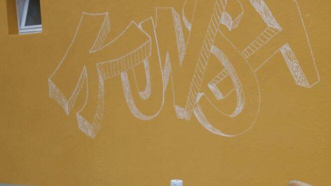 Sein Künstlerkollege Schlenger, der ebenfalls seit 2015 jährlich im Künstlerhaus gastiert, nähert sich dem entdeckten "Nordhalbener Spirit" aus anderer Sicht. Ihm haben es die Spuren der Zeit und des Schaffens auf den Gassen und in den Winkeln angetan, die er in einer sehr speziellen Art extrahiert und abstrahiert. Aus Straßenzügen werden runenartige Zeichen, die er in einer einfachen, aber effektiven Technik an der nackten Wand zum Leuchten bringt. "Talking to Birds" ist sein Arbeitstitel, wobei er auch auf die Vogelperspektive anspielt, die er - via heutiger IT-Möglichkeiten - gern als Ausgangspunkt nimmt.