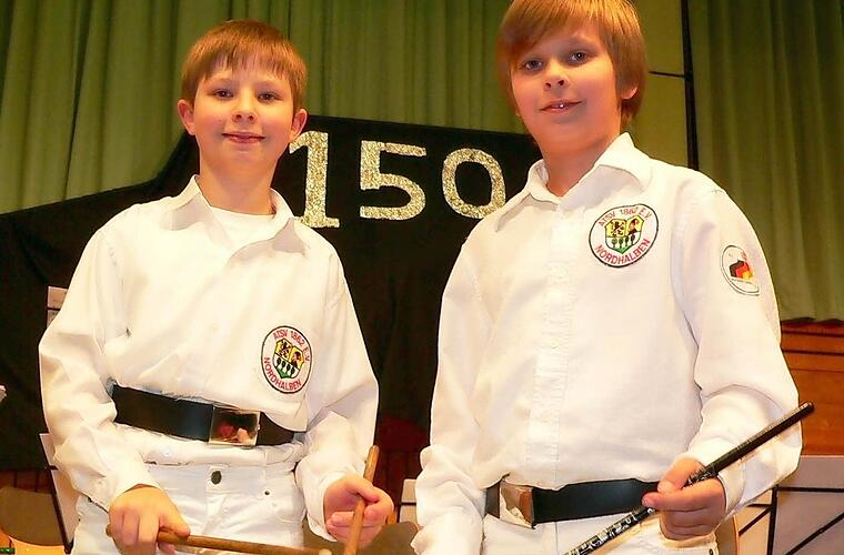 Mit von der Partie waren die beiden jüngsten Trommelbuben, Christoph Daum und Yannik Hüttner. Seit drei Jahren werden sie im Zug ausgebildet. "Ein bisschen nervös war ich schon, aber ich hab ja auch bereits im Schulchor Auftritte gehabt," meinte der elfjährige Christoph. Sein gleichaltriger Kamerad Yannik hatte keinerlei Lampenfieber und gab sich selbstbewusst: "Das Schöne beim Konzert ist, dass wir unser ganzes Können zeigen dürfen."