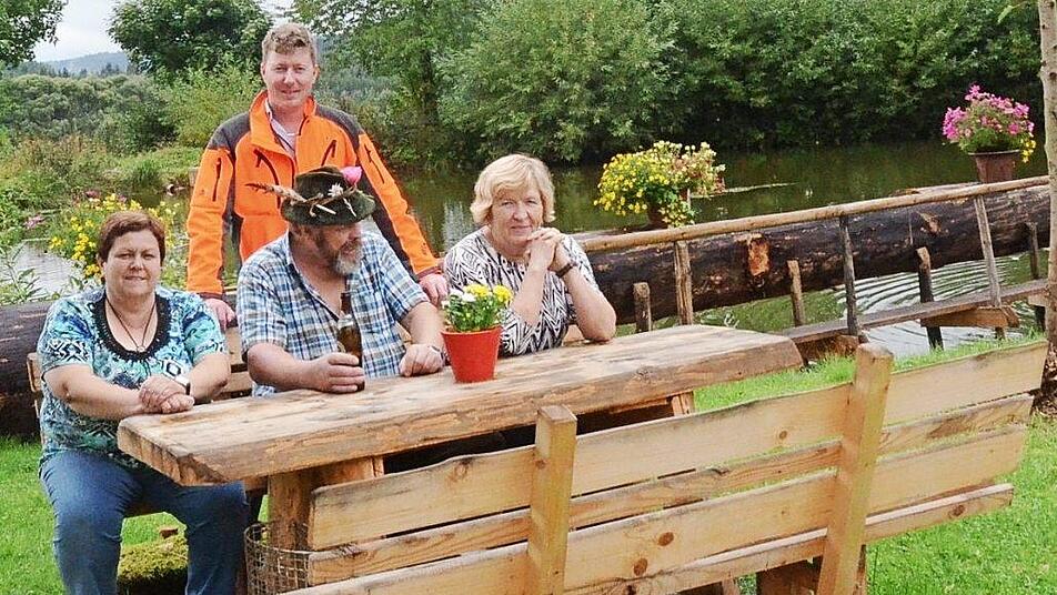 Allen voran geht bei diesen Holzarbeiten Gerhard Deuerling, besser unter dem Namen "Lola" als Dorforiginal bekannt. Er sägt und schnitzt aus Leidenschaft und mit Herzblut besonders anschauliche Werke aus Holz und verschönert seinen Heimatort. Aus gutem Grund waren zu der Übergabe und Inbetriebnahme des neuen, überdimensionalen Dorfbrunnens aus Holz auch die Revierleiter des Forstbetriebs Rothenkirchen, Christian Goldammer (Revier Tettau) und Dieter Sonntag (Revier Wilhelmsthal) geladen.